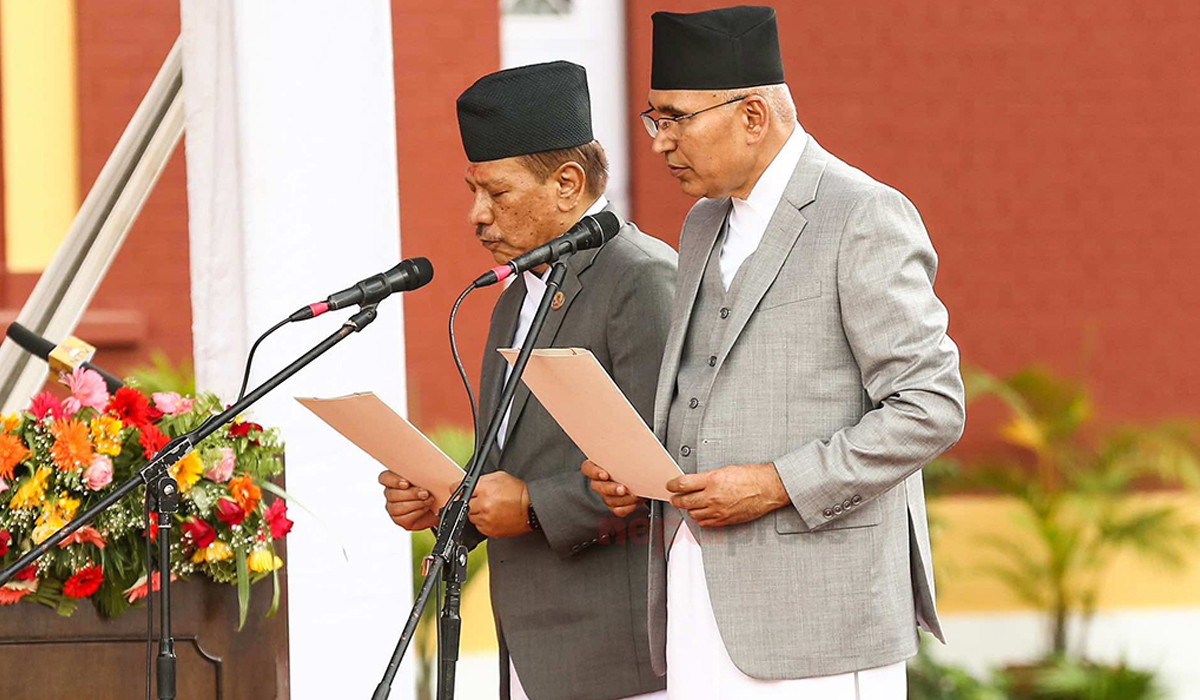 आइतबार प्रधानमन्त्रीमा नियुक्त ओलीलाई राष्ट्रपति रामचन्द्र पौडेलले आज शीतल निवासमा शपथग्रहण गराएका हुन् । एमाले अध्यक्ष ओलीलाई राष्ट्रपतिले नेपालको संविधानको धारा ७६ को उपधारा ९२० बमोजिम प्रधानमन्त्रीमा नियुक्त गरेका थिए ।
