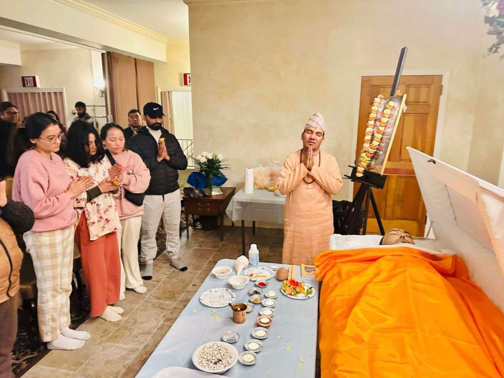 नेपाली समय अनुसार राति ९ः४५ बजे न्यूफिल्डआइएनसि मा उनको दाह संस्कार गरिएको थियो। दाह संस्कार कार्यक्रममा परिवारजन, साथीभाइ, र न्यूर्क क्षेत्रमाबसोबास गर्ने नेपाली समुदायका व्यक्तिहरू उपस्थित थिए।
