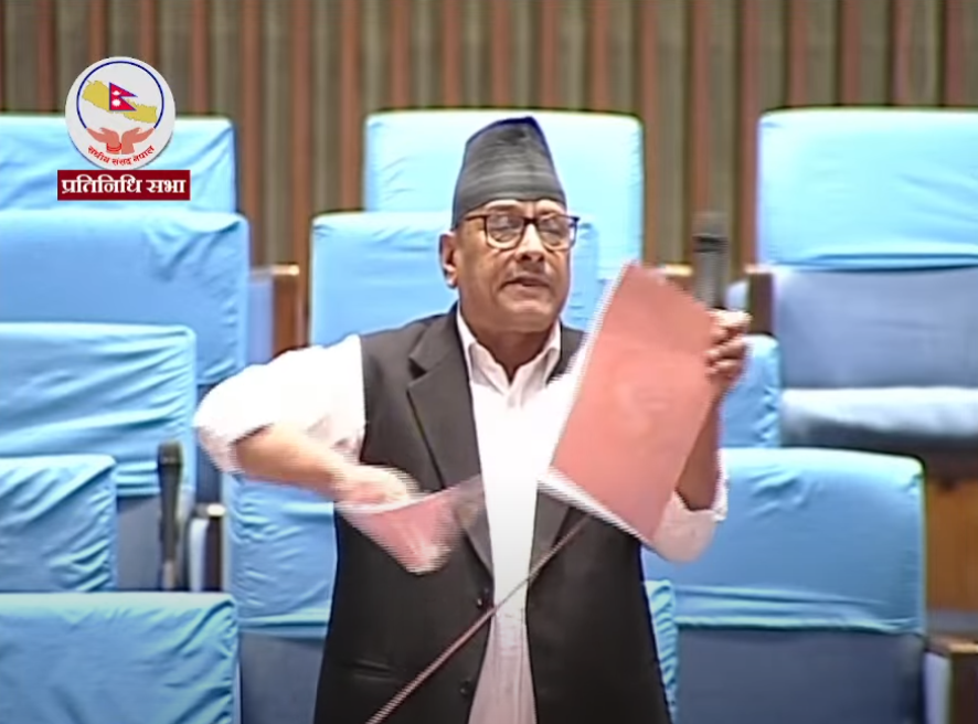 बिहीबार प्रतिनिधिसभाको बैठकमा सरकारले ल्याएको बजेटमा एकाधिकार कायम गरिएको र जनताप्रति उत्तरदायी नभएको भन्दै उनले बजेट पुस्तिका सदनमै च्यातेका हुन् ।