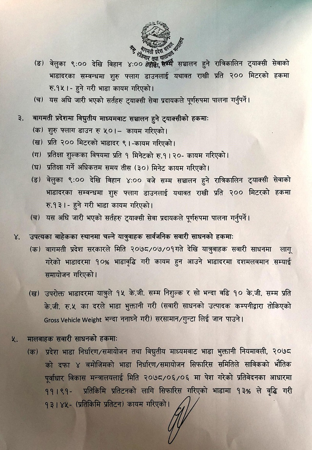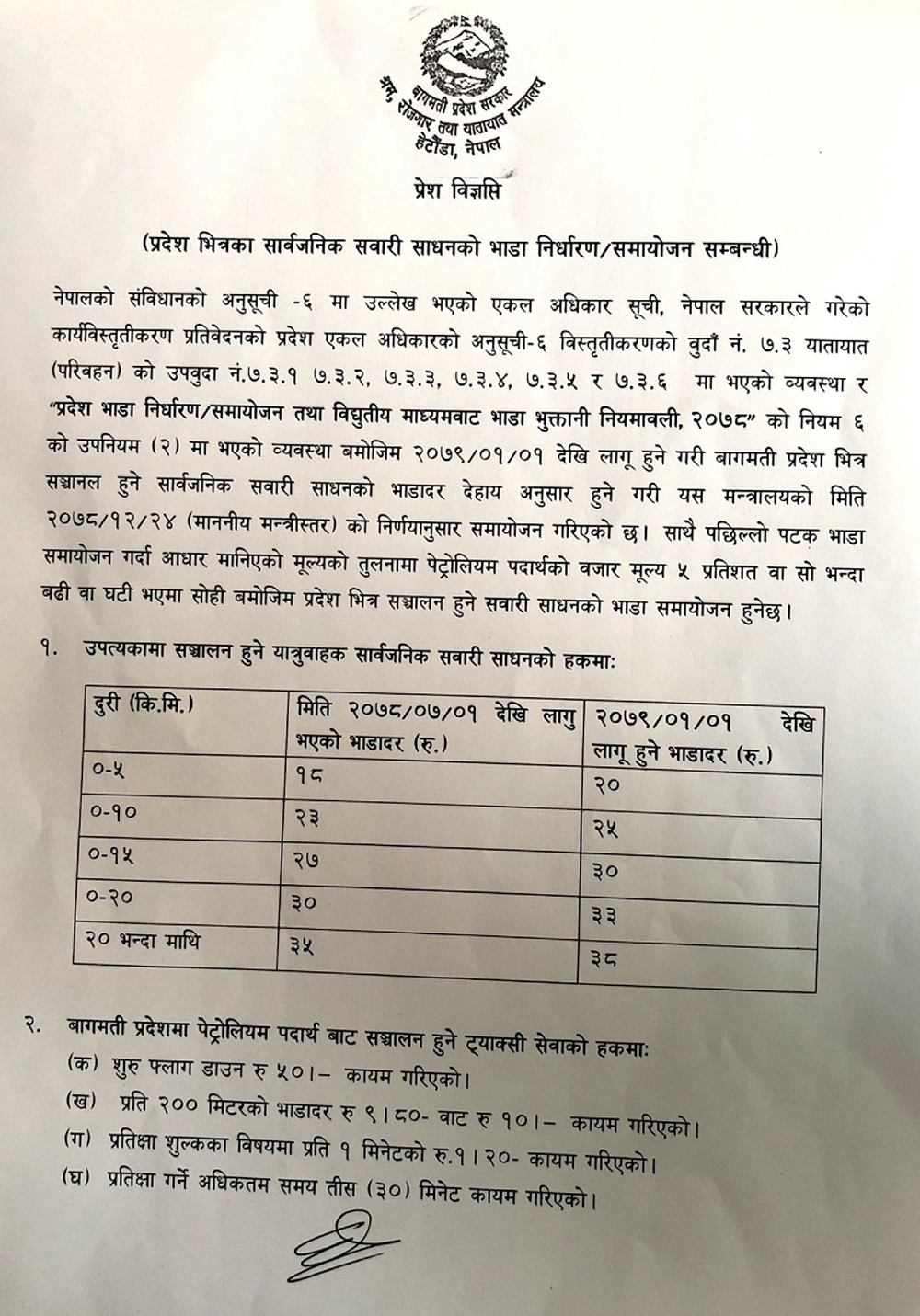 नेपाली नयाँ वर्षदेखि लागू हुने गरी बागमती प्रदेश सरकार अन्तर्गतको श्रम, रोजगार तथा यातायात मन्त्रालयले सार्वजनिक यातायातको भाडादर बढाएको हो ।