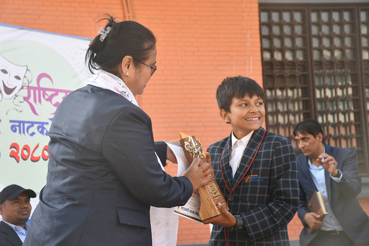 काठमाडाैं । राष्ट्रिय बाल नाटक मेला २०८० काे सर्वाेत्कृष्ट नाटक ‘भागु’ घाेषित भएकाे छ । उत्कृष्ट अभिनेता, अभिनेत्री, निर्देशक लगायत ७ वटा अवार्डसहित सर्वोत्कृष्ट नाटकको उपाधि सहित ‘भागु’ ले एक लाख रुपैयाँ नगद पुरस्कार प्राप्त गरेकाे हाे ।